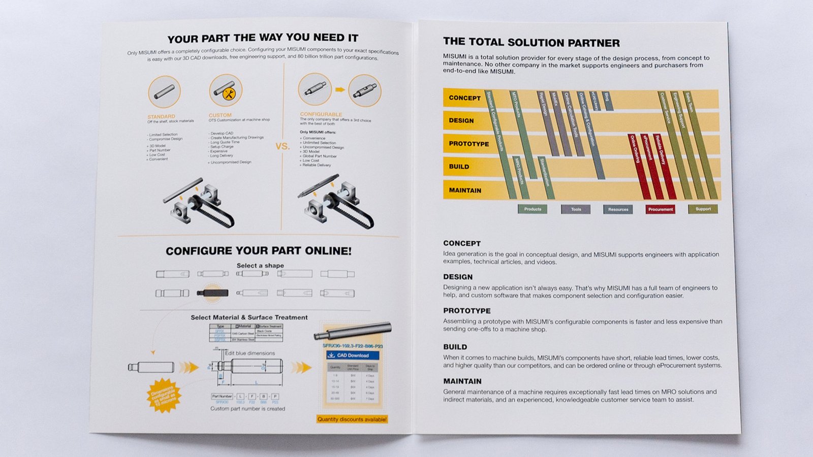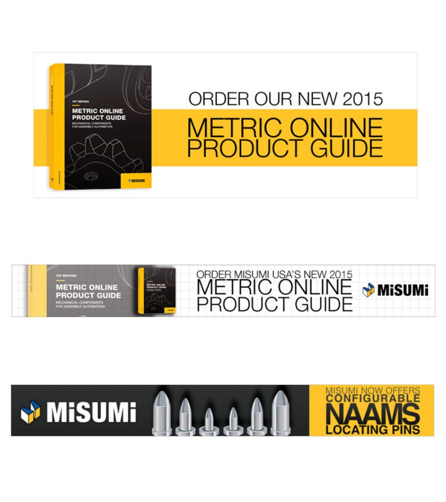 Working closely with the Director of Marketing and Marketing Manager, I helped establish a distinct North American brand expression—one that preserved MISUMI’s engineering credibility while aligning with Western expectations around premium marketing and sales materials. We introduced a bold yellow-and-black color system to create immediate visual contrast, elevated catalogs and brochures through the use of premium stocks and finishes, and brought intentionality to every customer touchpoint.